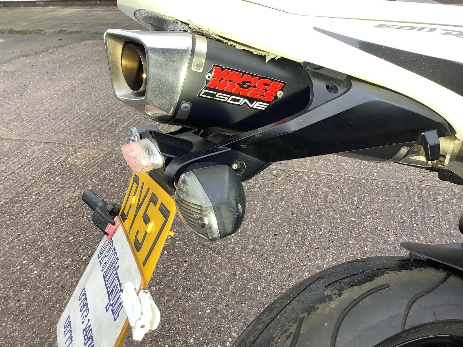 HONDA CBR 600 RR-7 first registered September 2007 on a 57 reg, lovely clean bike as shown in all close up pictures and videos, fully HPI checked and all clear, logbook here, 3 former keepers, nice file of paperwork with old mots etc, owners book, service book, recently serviced, looks well in the black with contrasting white. Has a Vance & Hines sports exhaust, single seat converter, tinted screen, crash bobbins, comes with the standard exhaust, standard seat and rear foot hangers and pegs. Recent front EBC brake discs. Runs and rides well, does look a clean one, ready to ride away. For a walk round video please follow the link : https://youtu.be/GgaBoC-gHhI?si=jVuxW3dUDtOd5xuqAdditional information