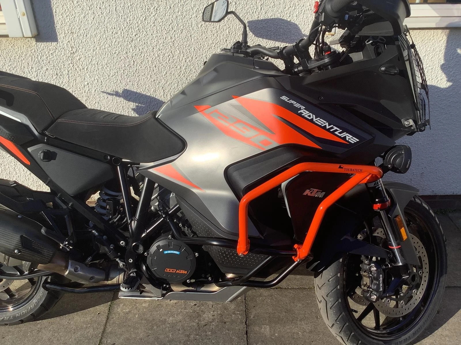 KTM 1290 Super Adventure S first registered Nov 2021 on a 71 reg, fully loaded great cared for example as shown in all close up pictures and walk round video. Logbook here, 1 former keeper, uk bike, fully Hpi checked and all clear, last serviced at 18,470 miles, nice pack of old service invoices, and invoices for upgraded parts. One of the best Adventure/ touring bikes on the market, very powerful v twin 1301 cc, comes from the factory with handy centre stand, Brembo brakes, WP Electronic suspension, large TFT digital screen, and recent new tyres. To make the riding experience even better the previous keepers have added Arrow Exhaust, Touratech crash bars, sump guard, headlight guard, sat nav mount etc Garmin sat nav, heated riders and pillion seat, top box mount. If your looking at these bikes you’ll see this is a very clean example, all the right bits upgraded, and is ready to ride away. For a walk round video please follow the link : https://youtu.be/ZGXdMilrGeY?si=lnd_uaTZHLktJ2z0Additional information