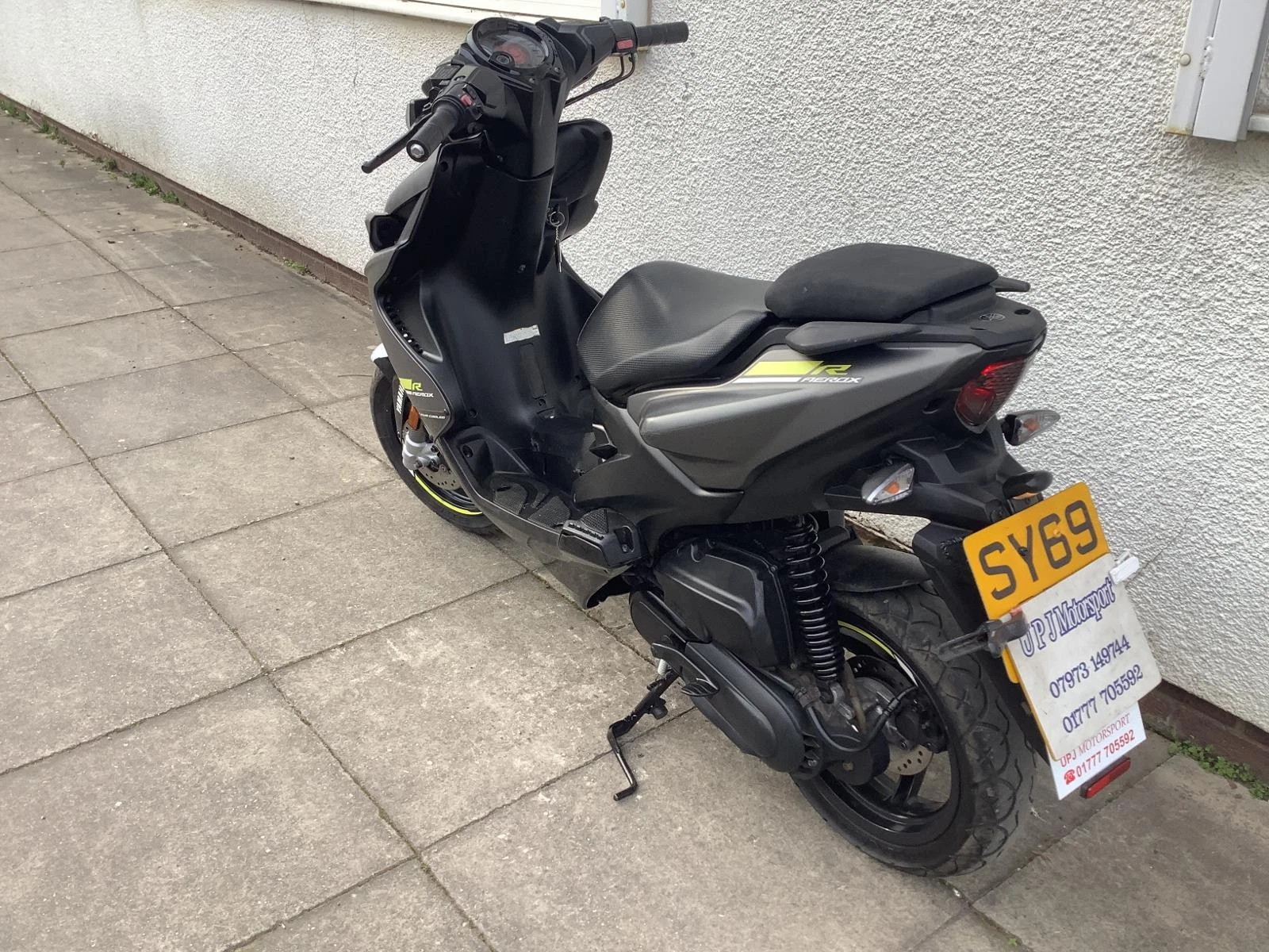 YAMAHA AEROX R 50 cc, first registered December 2019 on a 69 reg, typical scooter few scratches, odd crack, but still a tidy bike, all as shown in all close up pictures. Done 13,214 miles, mileage Vosa checked and correct, mot March 2027, logbook here, 6 former keepers. A modern looking scooter, metallic grey with contrasting graphics. This is a 49cc 16+ legal with your CBT, 4 stroke fuel injection electric start engine, under seat storage for your helmet etc. runs and rides well, ready to ride away. For a walk round video please follow the link : https://youtu.be/mnvgtnJo2zs?si=6TrnvwPeAHKZn_oMAdditional information
